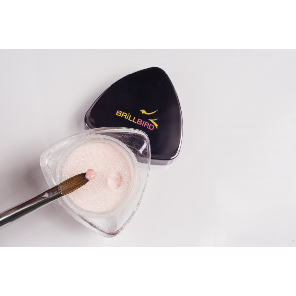 Cover Brill Powder, cechuje się miałkością produktu dzięki czemu idealnie się modeluje paznokcie zarówno na formie jak też na tipsie. Produkt nie rozwartwia się, nie tworzy smug.